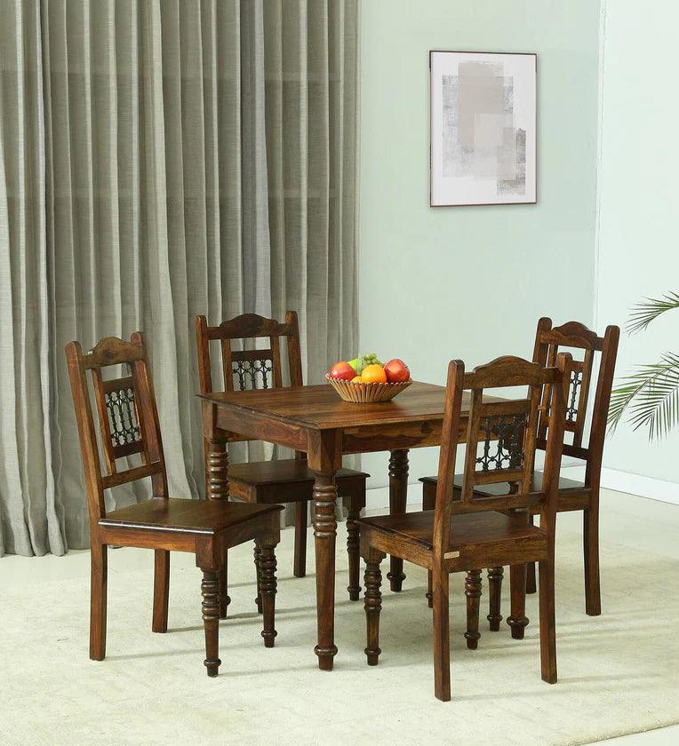 Sheesham Wood Ahalya 4-Seater Dining Table and Chairs - Ouch Cart