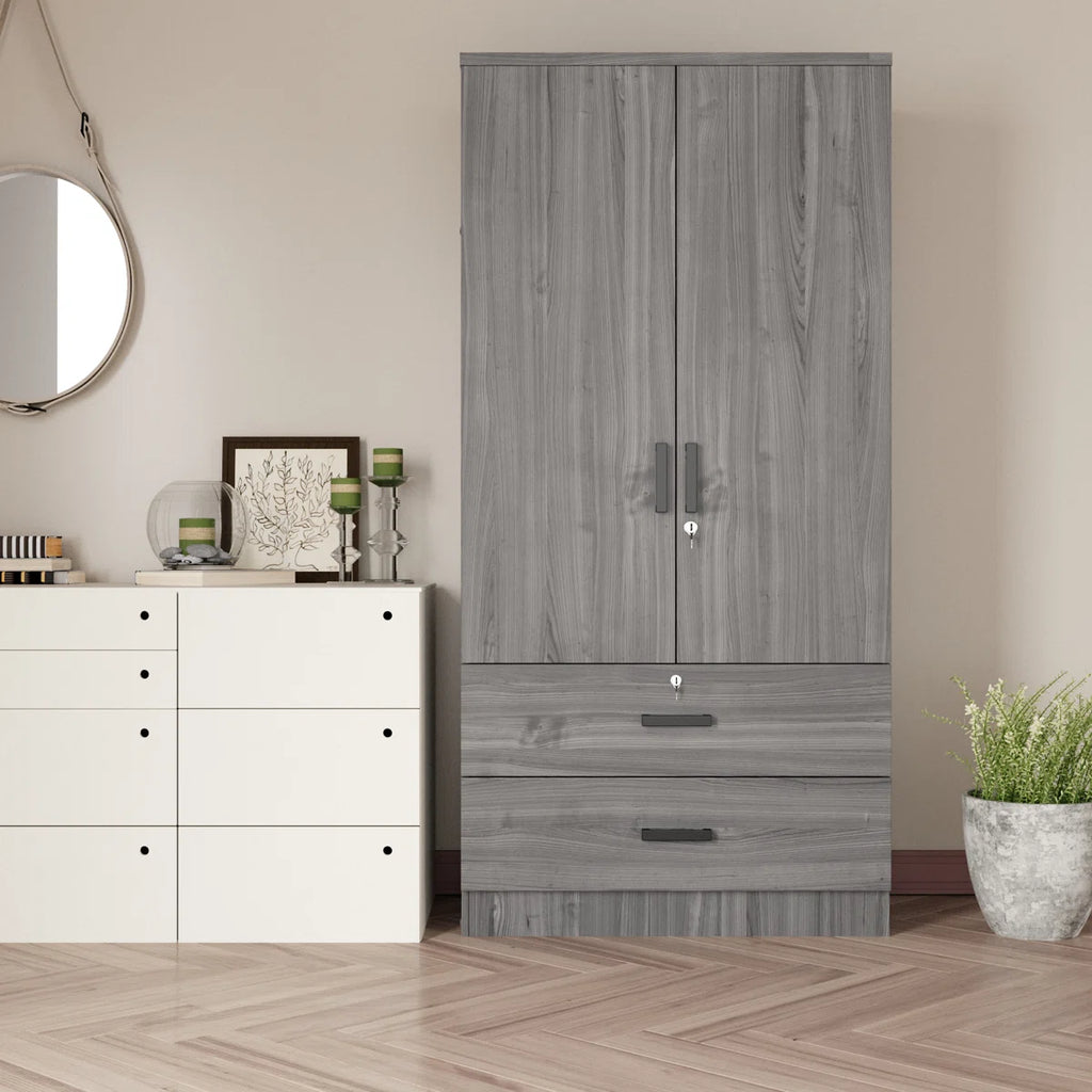 Stylish Scottie Armoire 2-Door Wardrobe with 2 Drawers for Bedroom