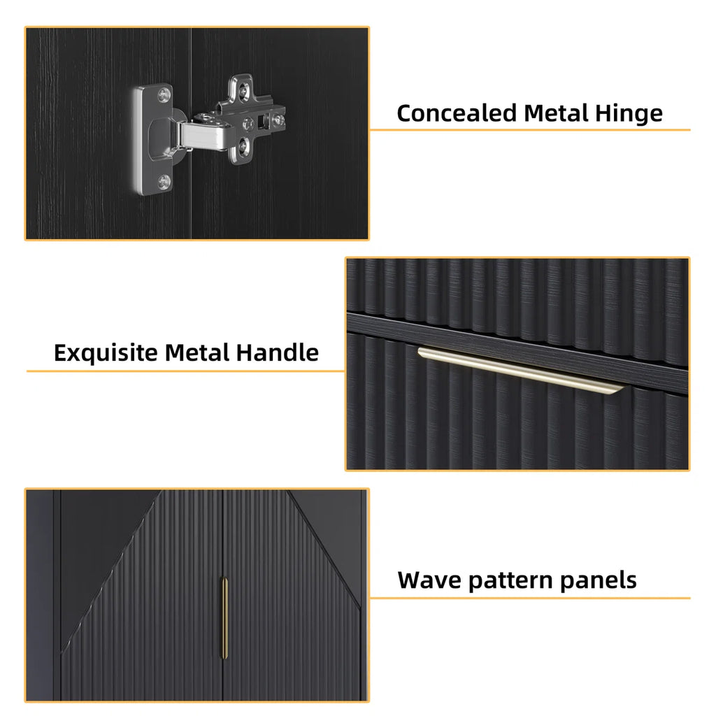 This wardrobe? Total game changer. It looks amazing with those bold striped doors — super modern, super cool — and it actually helps you stay organized (finally).
