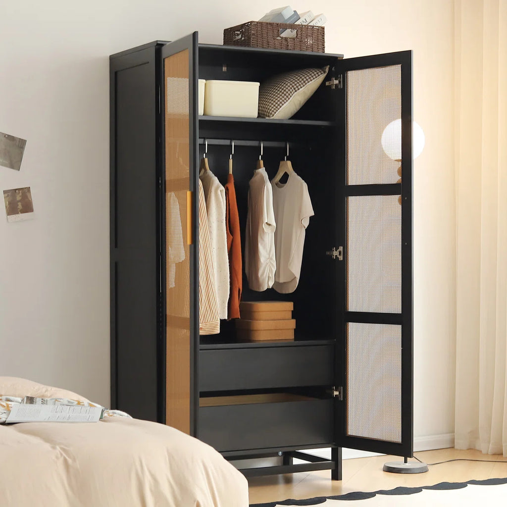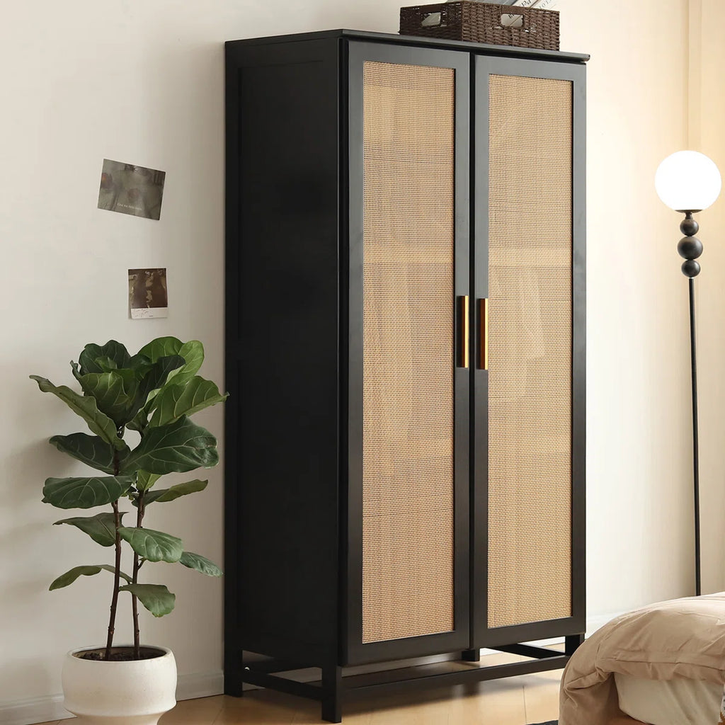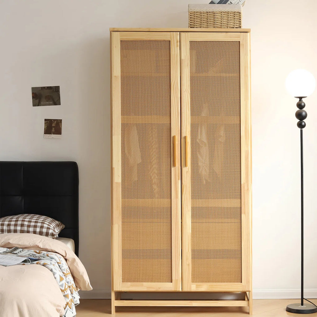 Albertha Solid Wood Bedroom Wardrobe Large Storage Rattan Door Style