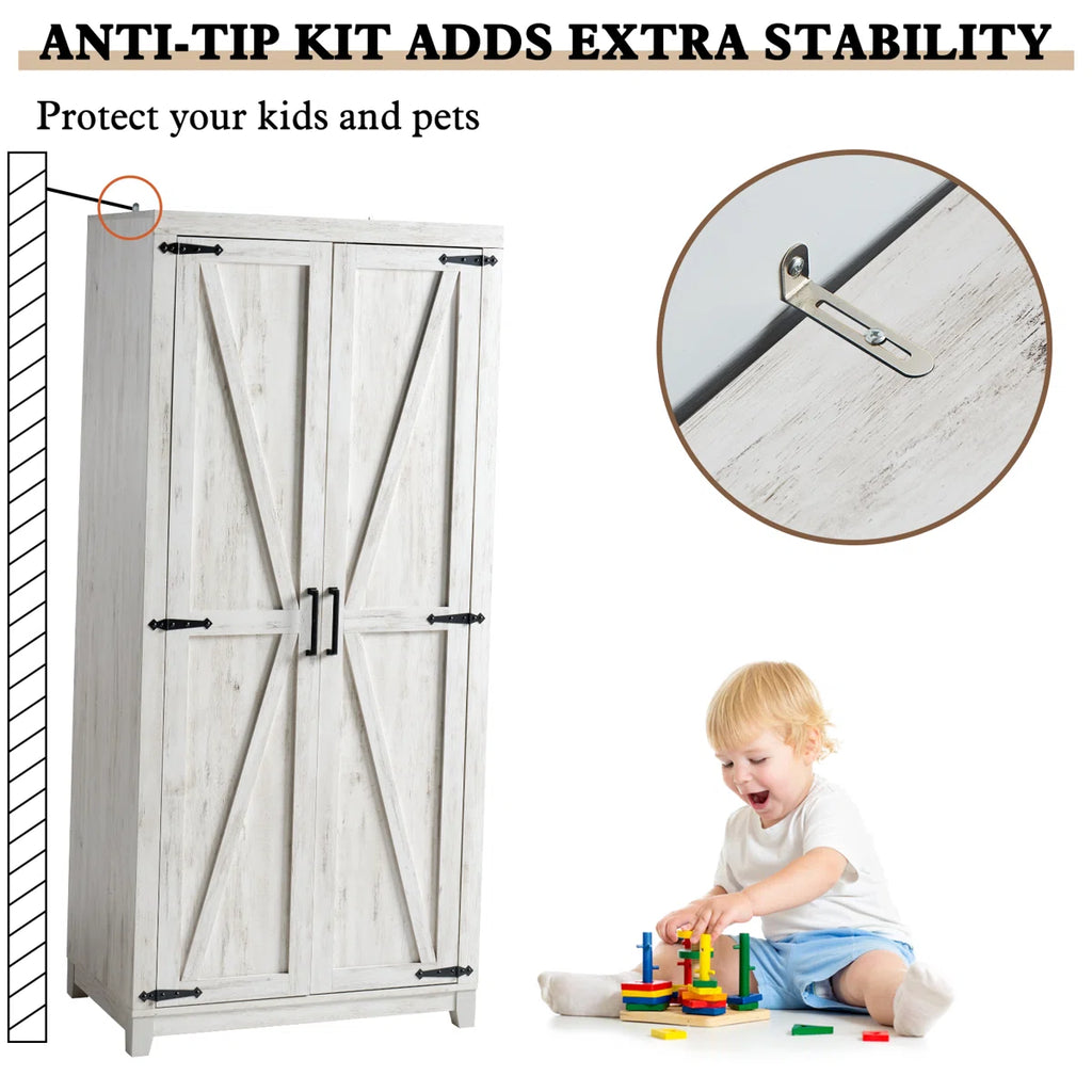 70" Farmhouse Freestanding Armoire Closet with Hanging Rod for Bedroom Organization