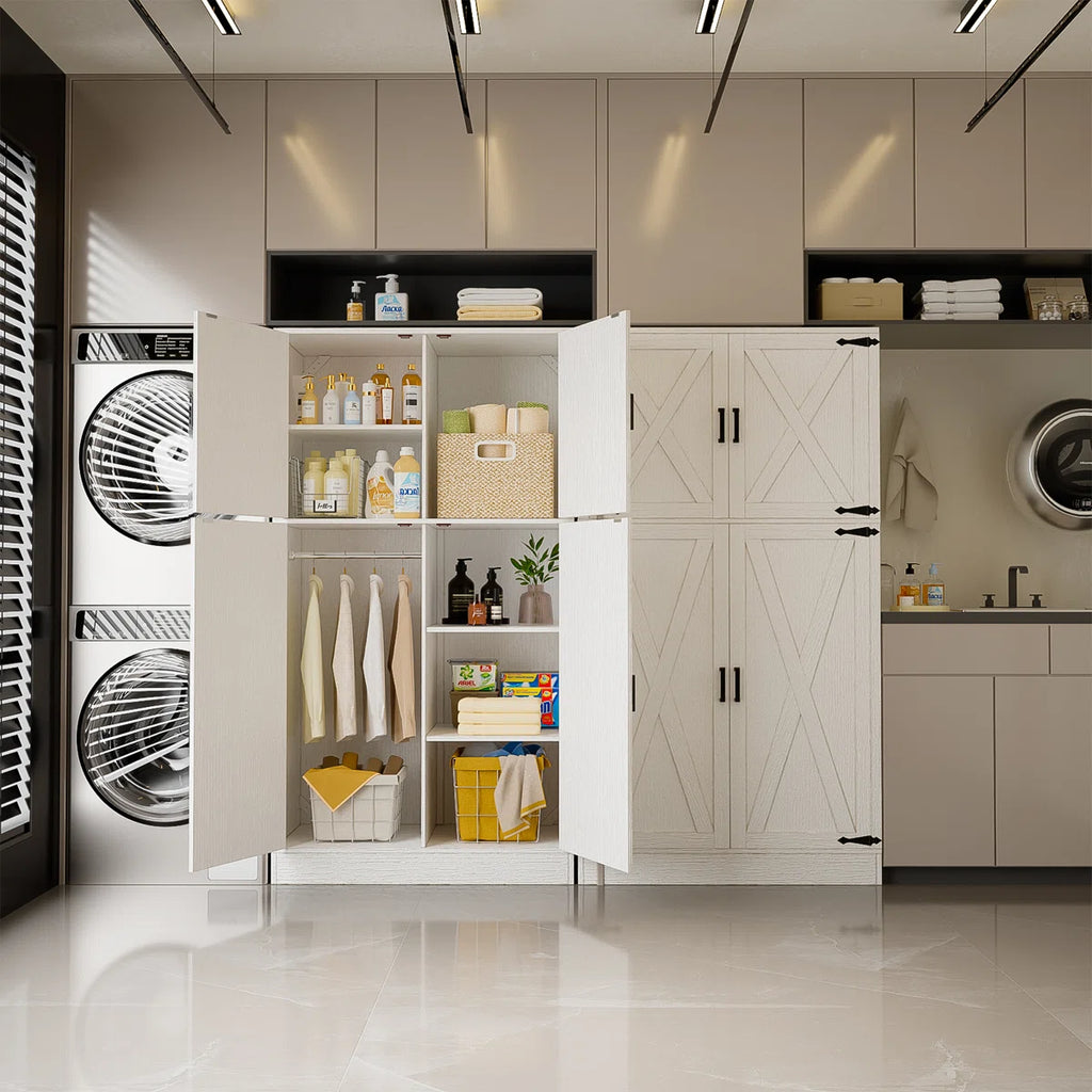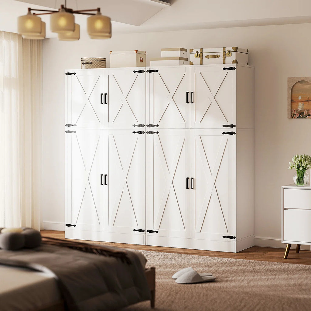 Functional 71'' Farmhouse Armoire Wardrobe Closet with Shelf and Hanging Rod