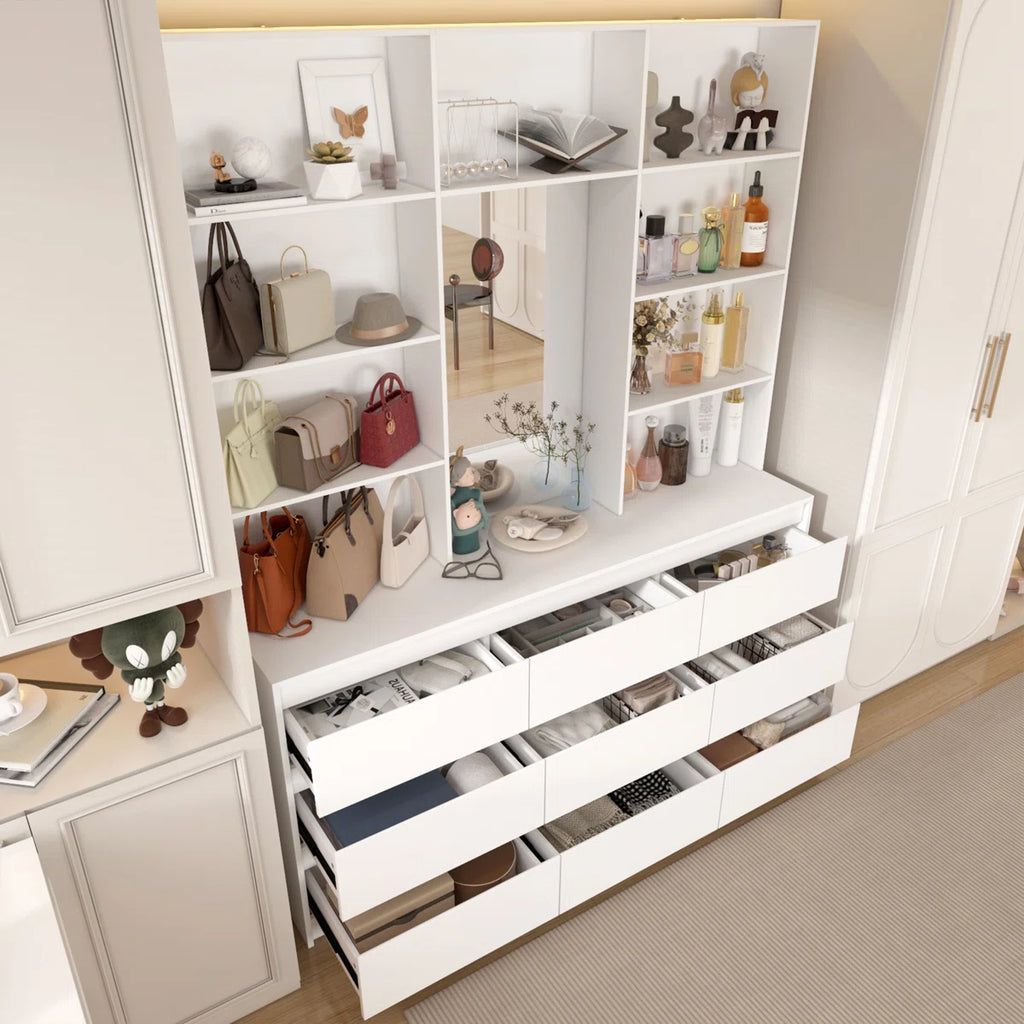 Spacious 9-Drawer 7-Shelf Wardrobe – Wooden Closet with Full-Length Mirror