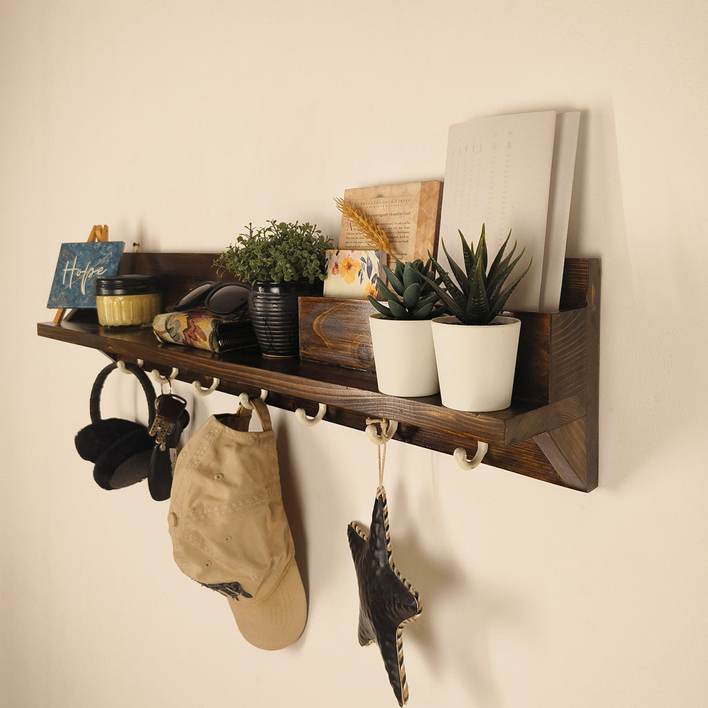 Stay organized in style with the ANDRE Wooden Wall Organiser with Key Holders. Crafted from high-quality wood, this elegant wall décor piece provides a practical space to hang keys, store essentials, and display decorative items, adding both functionality and charm to your entryway, hallway, or living space.