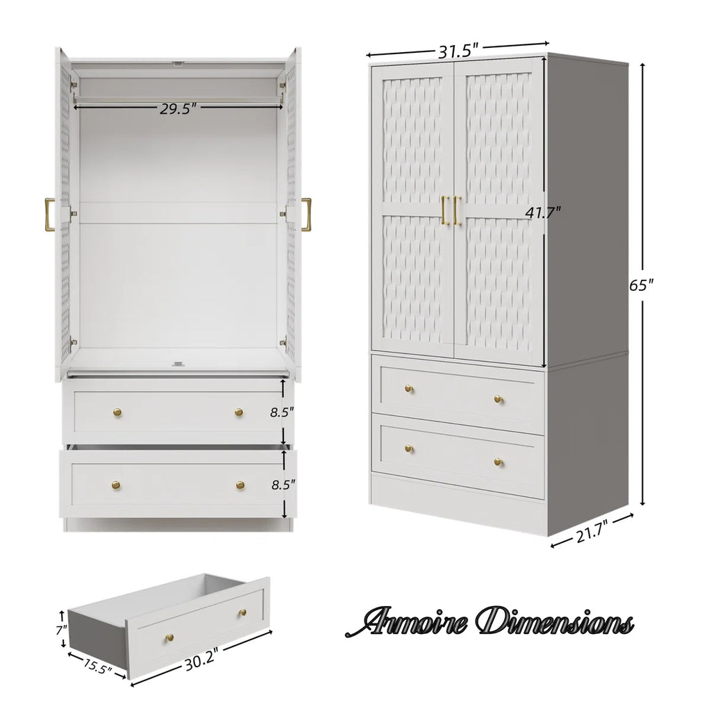 Ayara 2-Door Armoire Wardrobe – Wide Drawers and Hanging Rod for Bedroom