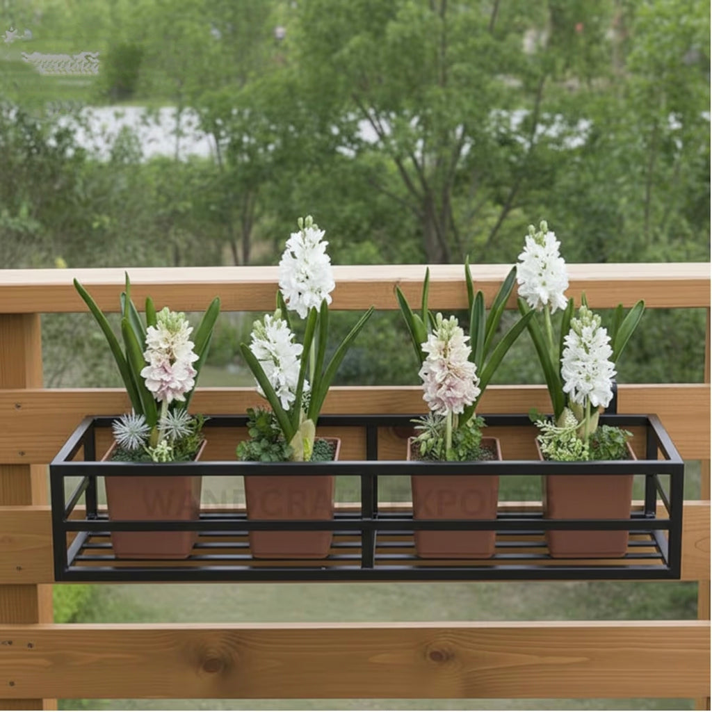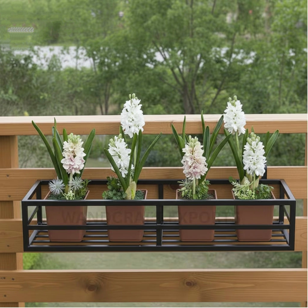 Upgrade your outdoor space with this Balcony Railing Planter Box with Black Metal Frame, designed to add greenery and charm to your balcony or garden. Made from sturdy metal with a sleek black finish, this rectangular flower pot holder easily fits onto balcony railings, making it perfect for displaying flowers, herbs, or small plants.