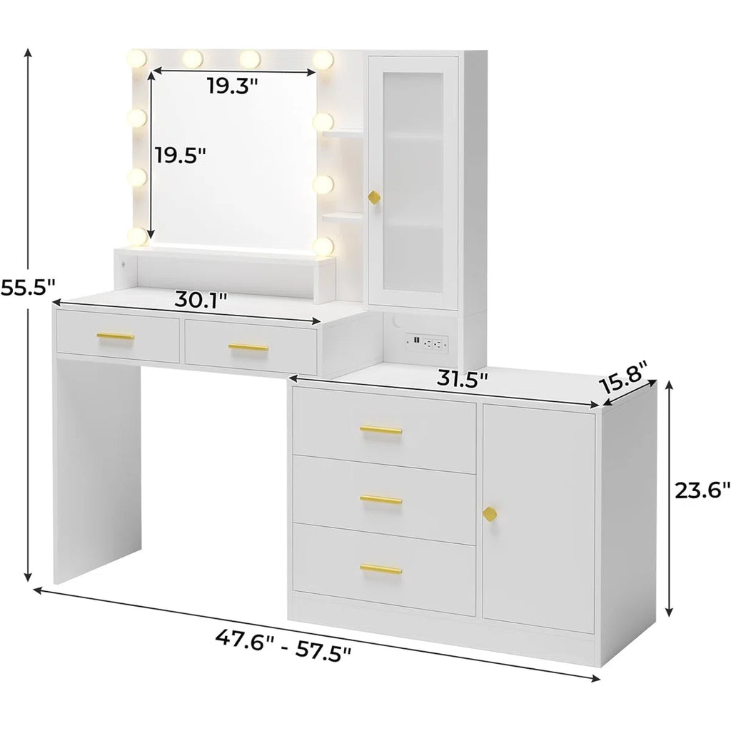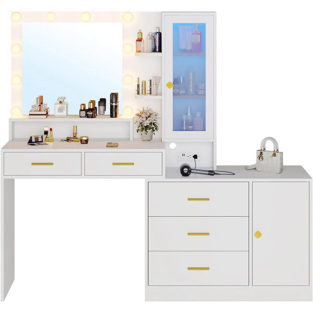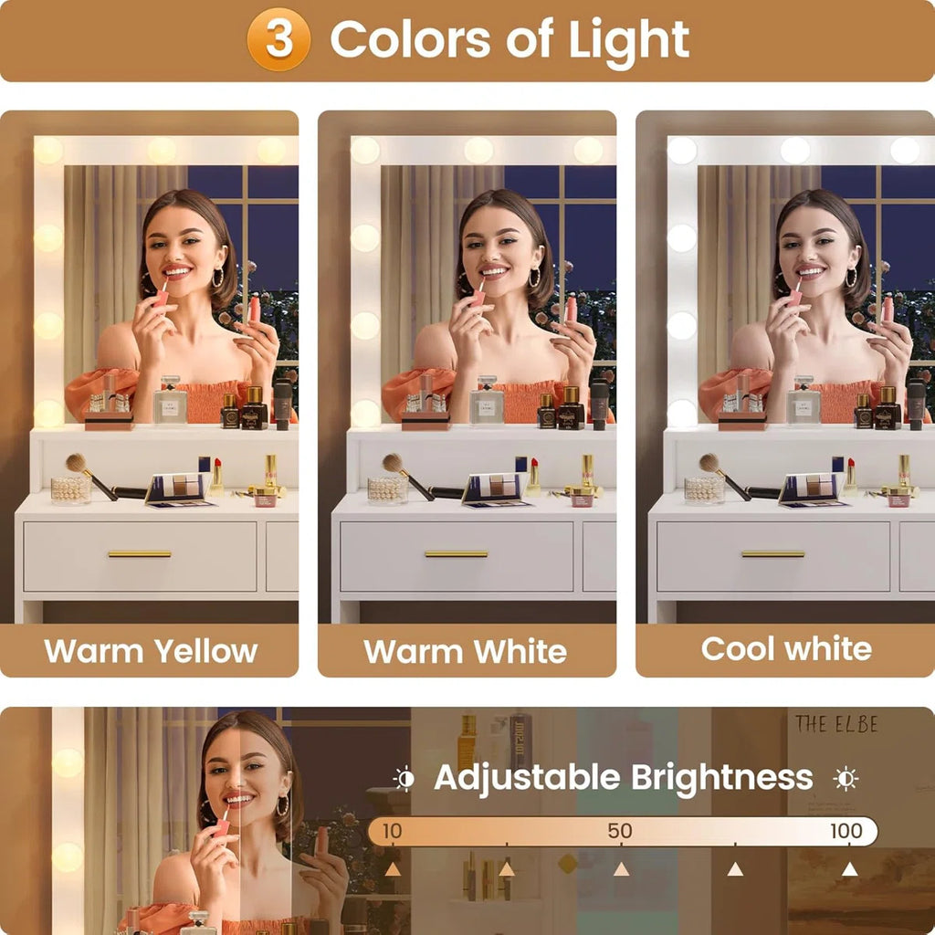 Caryol Vanity Table with LED Mirror Lights for Bedroom