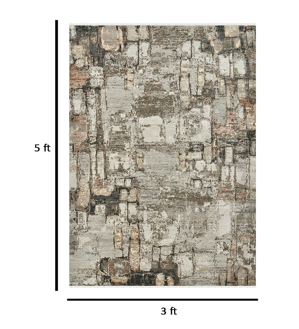 Ensemble Modern Pattern Hand Knotted Rectangle Anti-Skid Designer Carpet, Prayer Rug For Office Cabins, Small Living Spaces - 3'x5'