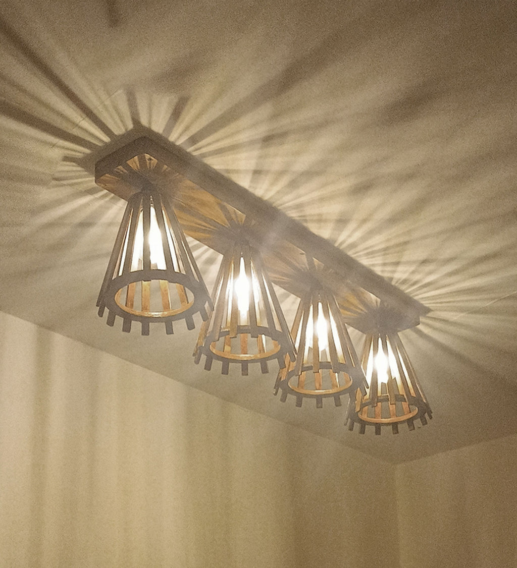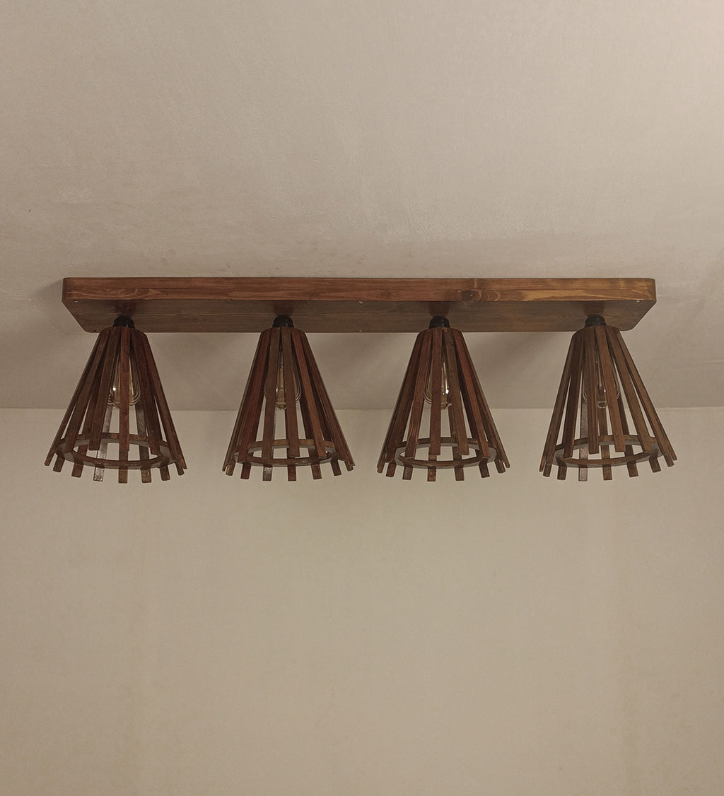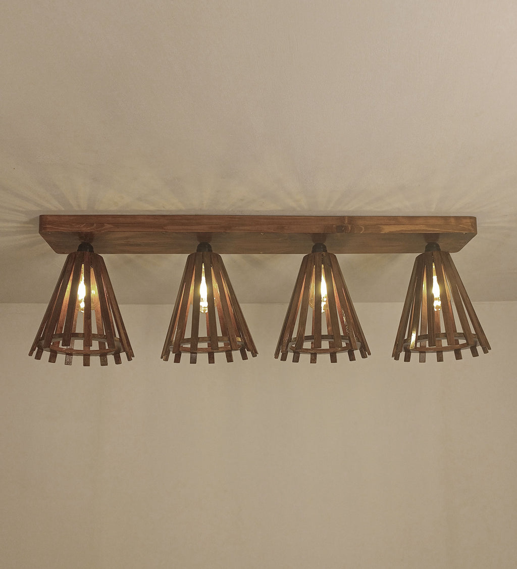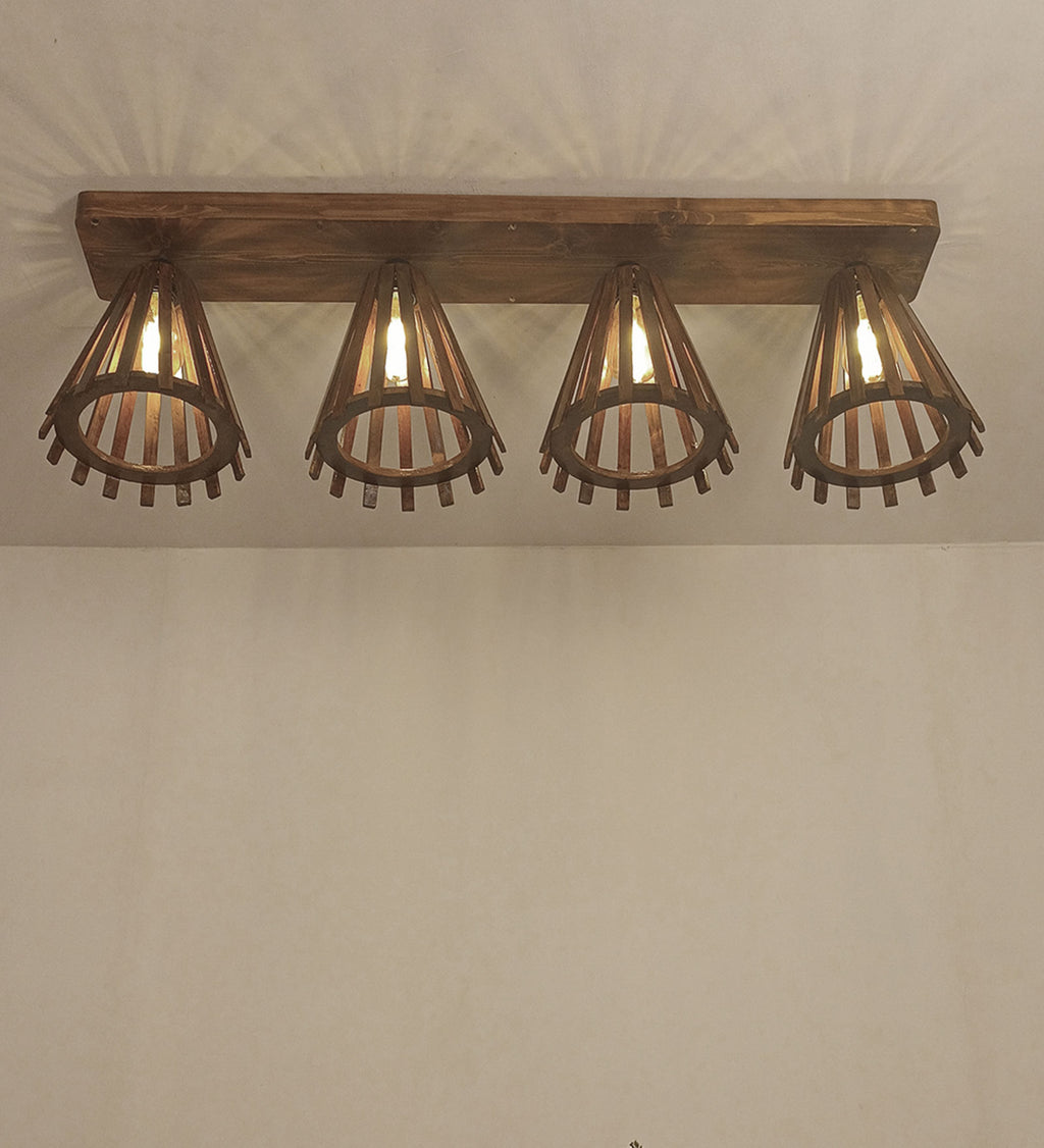 Funnel Brown Wooden 4 Series Ceiling Lamp (BULB NOT INCLUDED)