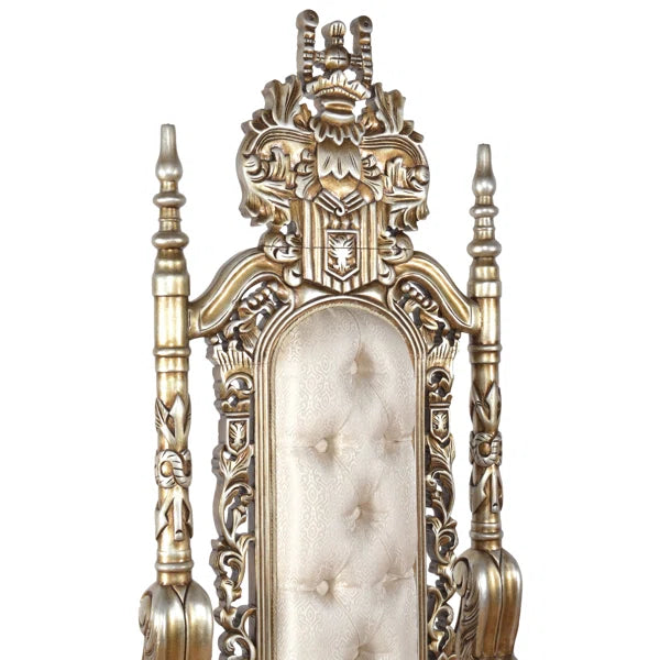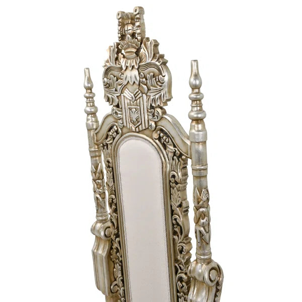 Striking, elegant, and undeniably regal, this statement chair commands attention with its tall silhouette and exquisite hand-carved detailing. Ornate carvings adorn both the front and back, while majestic lion mask motifs flank each arm, enhancing its royal presence and artistic appeal.