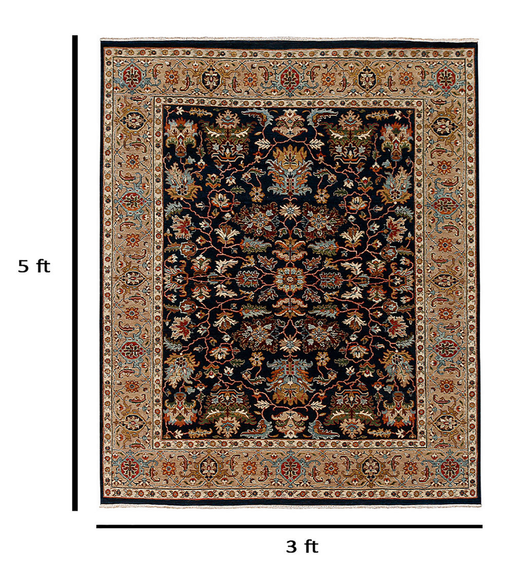 Heritage Classic Pattern Hand Knotted Rectangle Anti-Skid Designer Carpet, Prayer Rug For Office Cabins, Small Living Spaces - 3'X5'