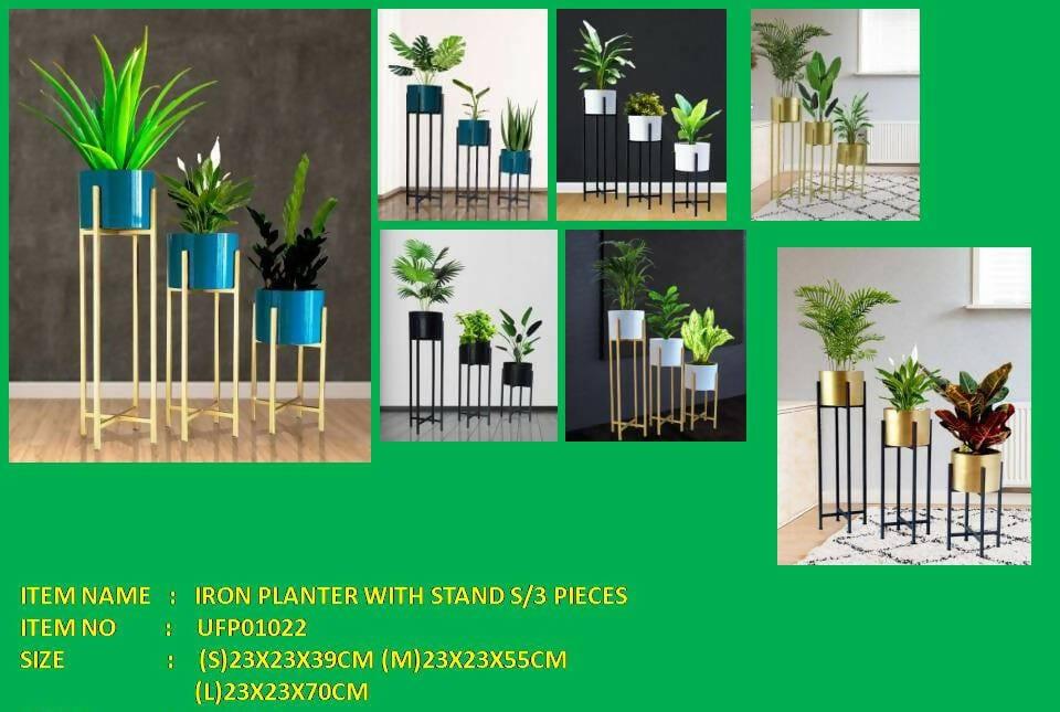 ITEM NAME: ITEM NO : IRON PLANTER WITH STAND S/3 PIECES SIZE UFP01022 : (S)23X23X39CM (M)23X23X55CM (L)23X23X70CM