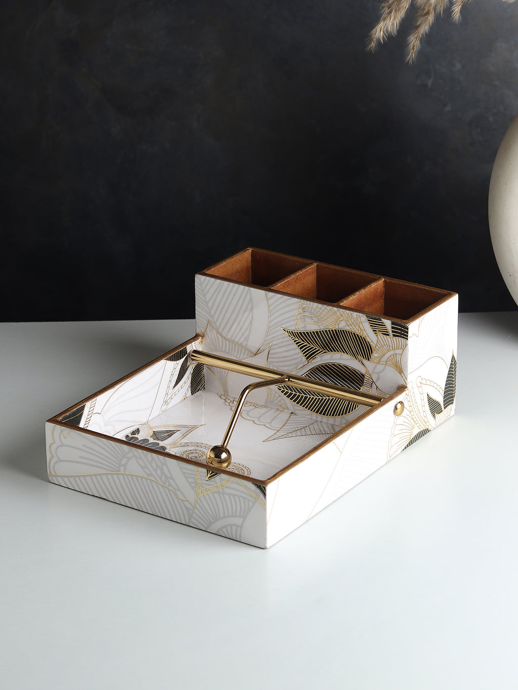 Ivory Noir Bloom Cutlery and Tissue Holder