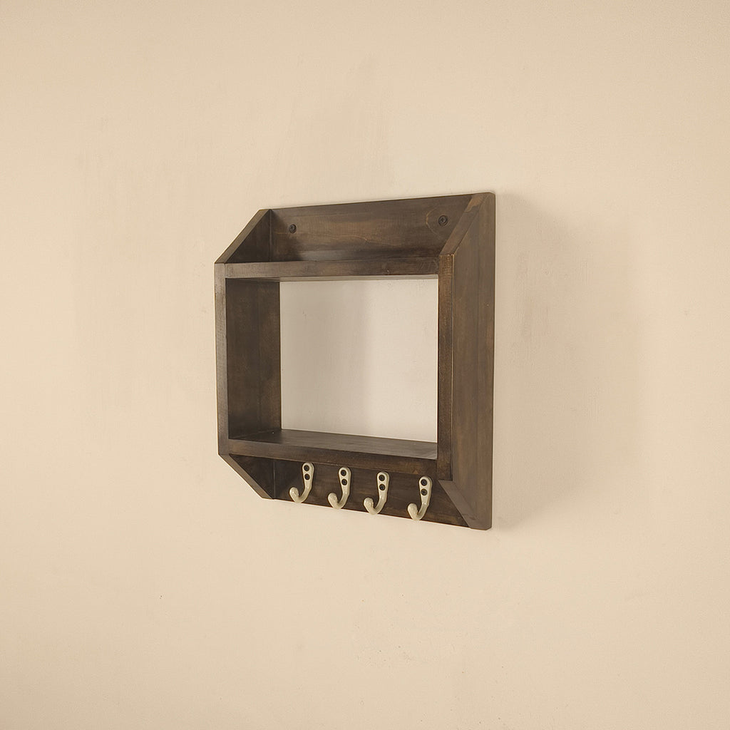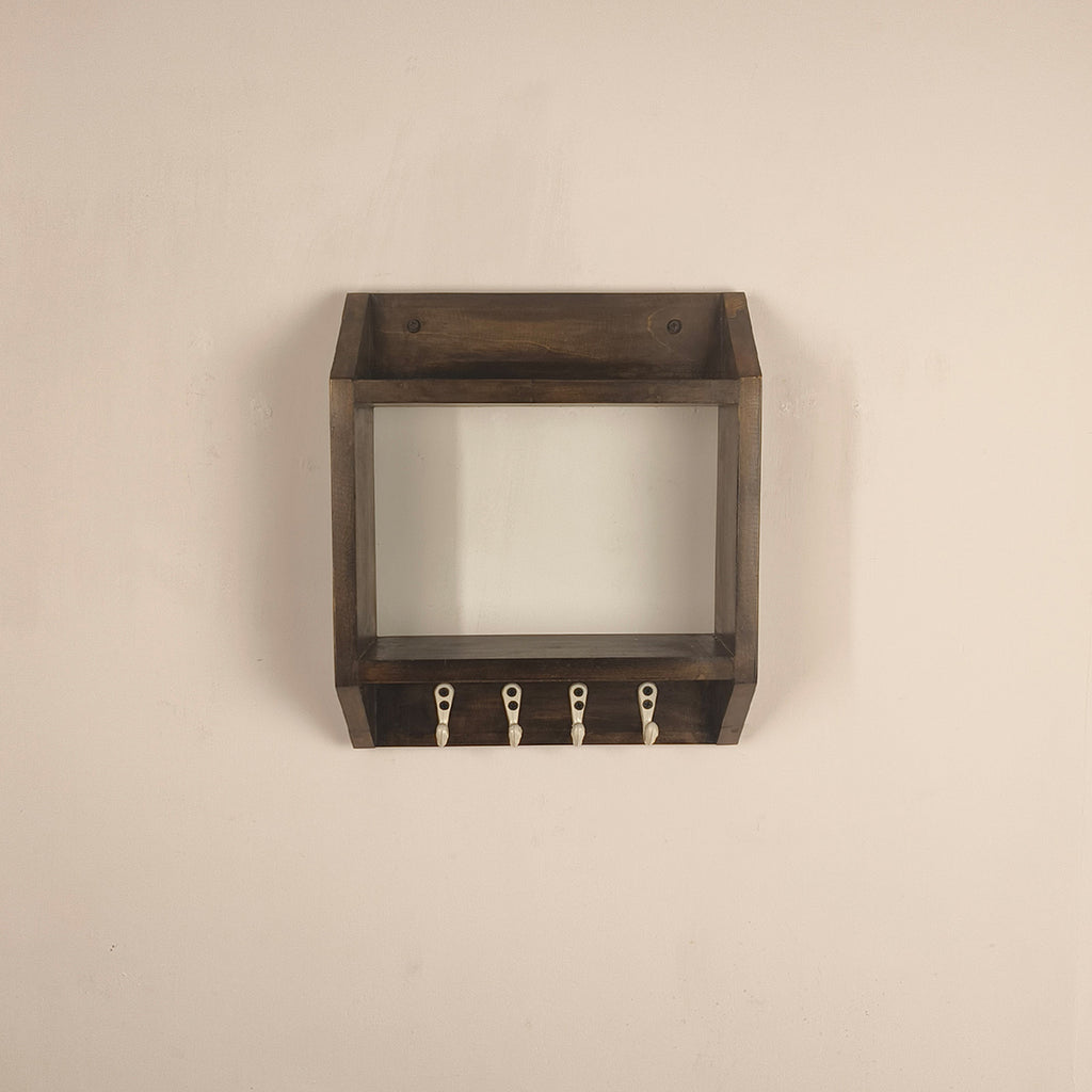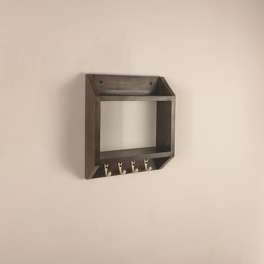 Organize your home with style using the Kingston Wooden Wall Shelf Organiser with Key Holders. Made from high-quality wood, this versatile wall décor piece provides a convenient space to hang keys, store essentials, and display decorative items, adding both functionality and elegance to any room.