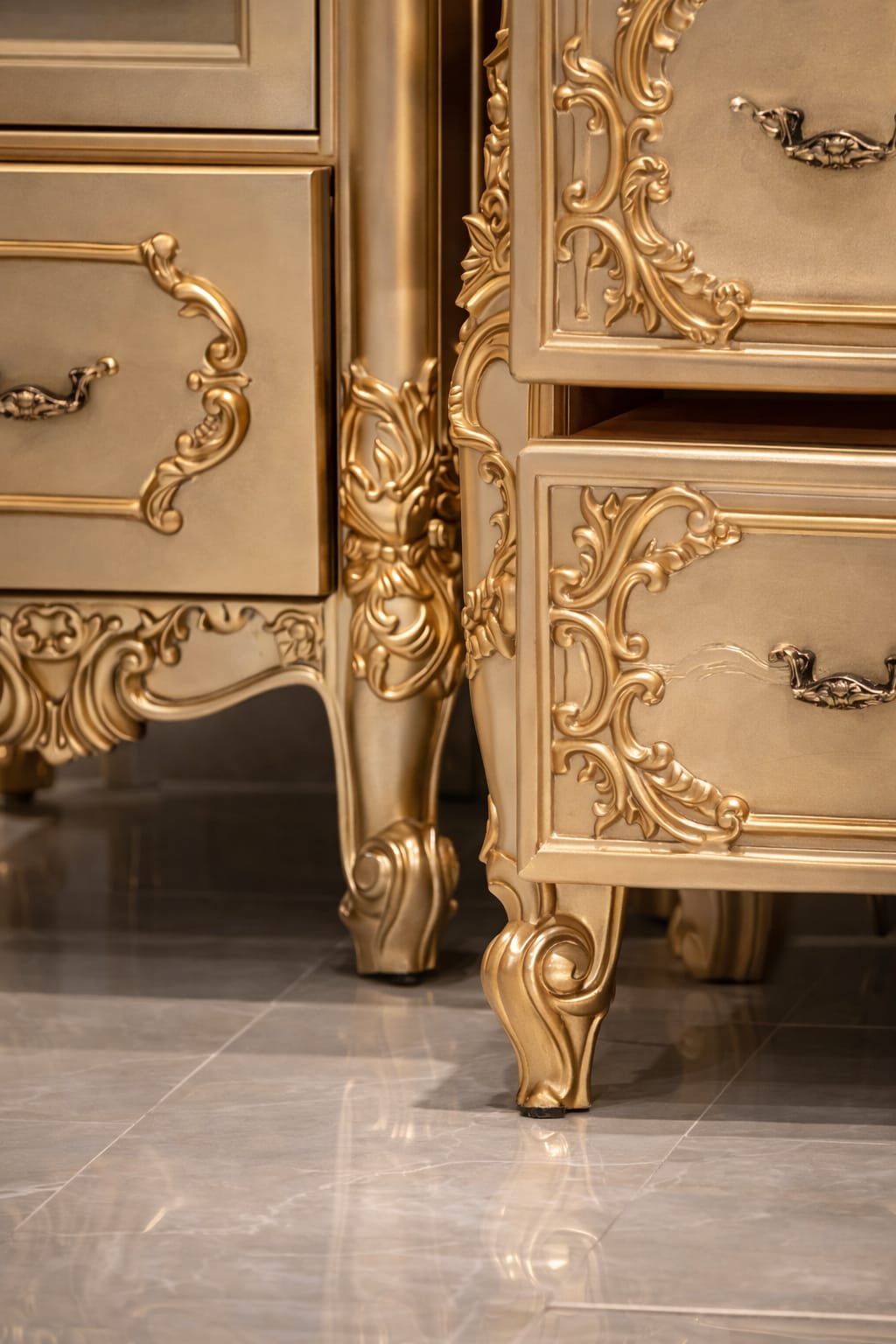 Enhance your living room with timeless elegance through this luxury royal TV cabinet and console table set, crafted to deliver both style and functionality. Featuring an exquisite gold finish with ornate carved detailing, this unit brings a palace-inspired charm to modern interiors.