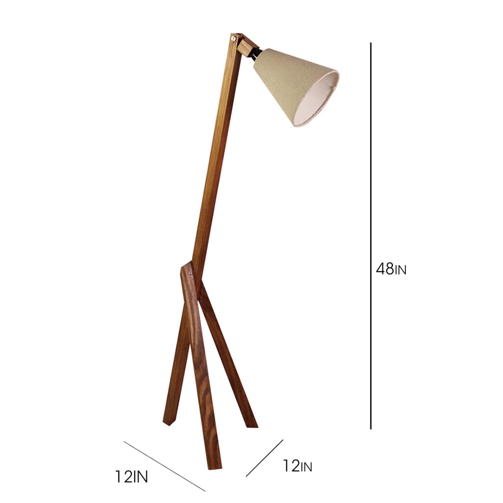 Melman Wooden Floor Lamp with Brown Base and Beige Fabric Lampshade (BULB NOT INCLUDED)