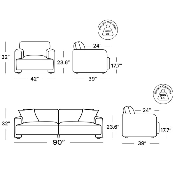 Overall Dimensions: 32'' H x 90'' W x 38.58'' D
