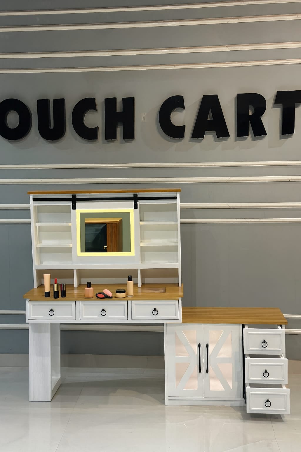 Modern White Wooden Dressing Table with LED Mirror & Storage Cabinet | Makeup Vanity Unit