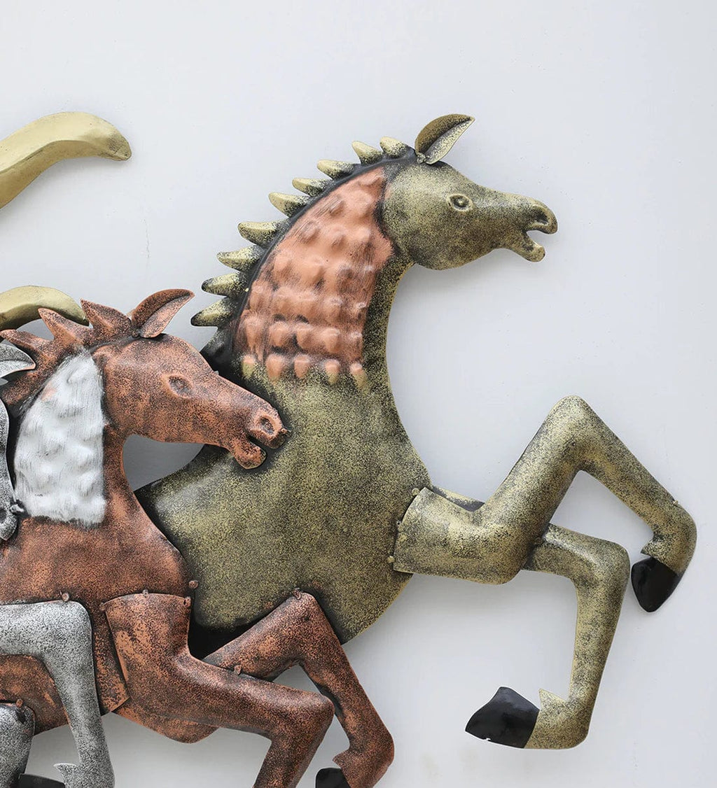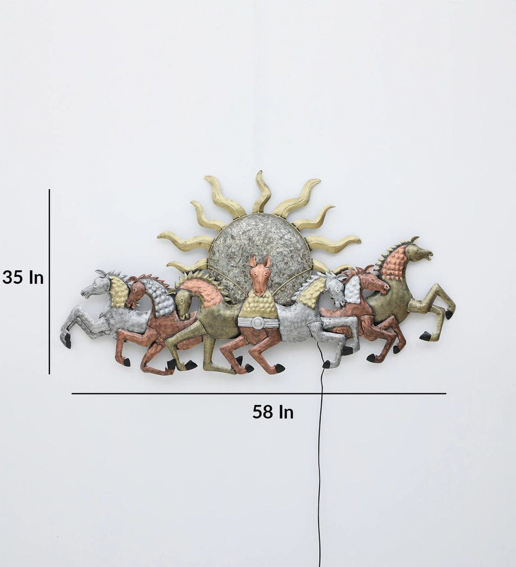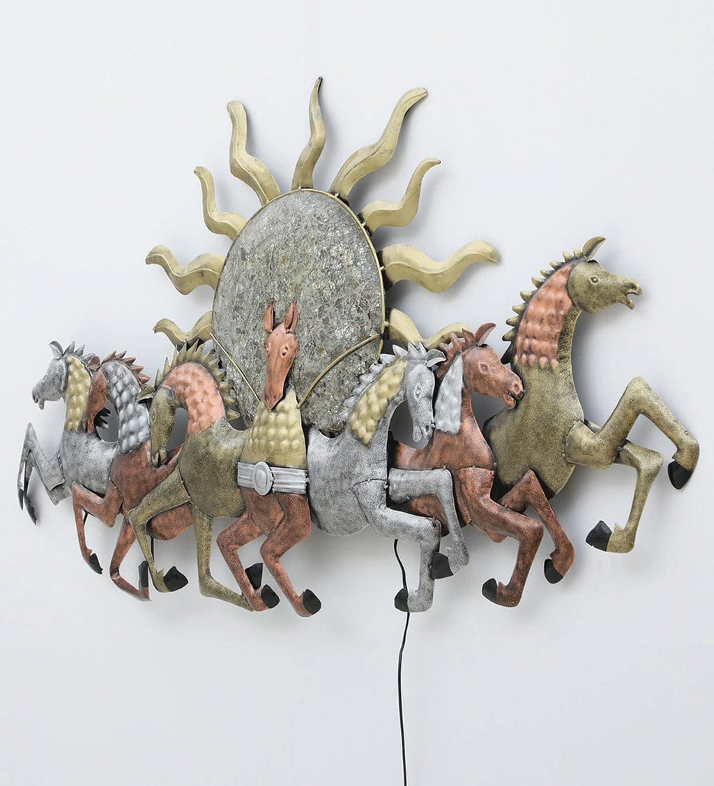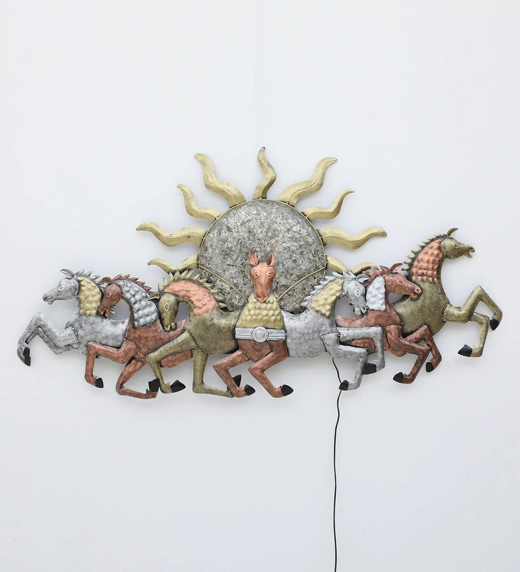 Multicolor Running Horses Metal Wall Art with LED Light,