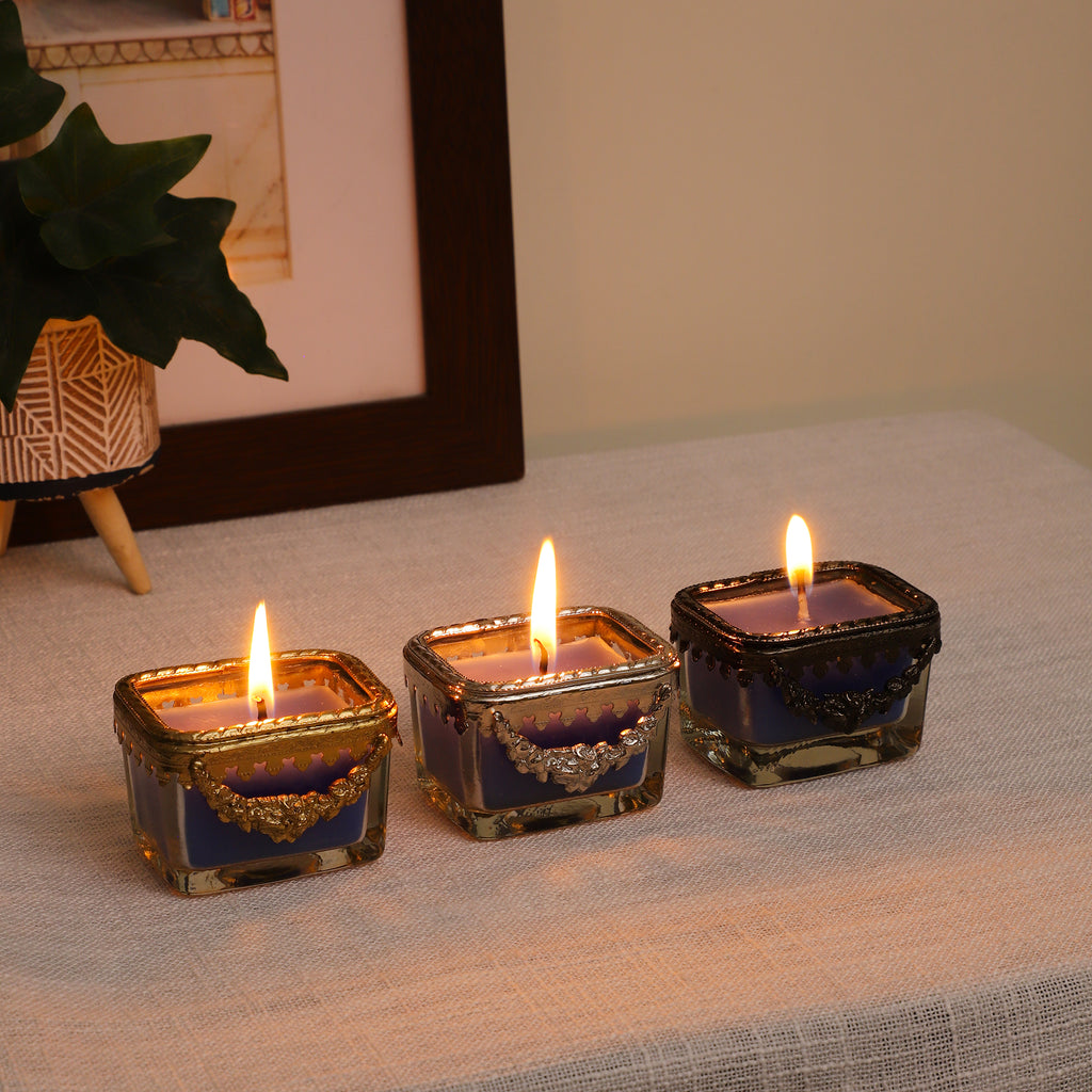 ocean breeze blue Scented candle glass jar with silver ring - OUCHCART