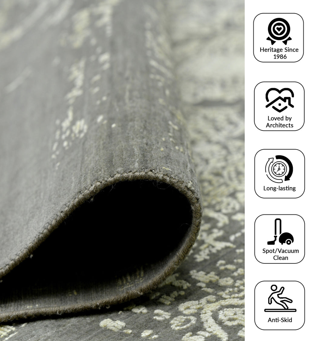 Pearl Transitional Pattern Hand Knotted Rectangle Anti-Skid Designer Carpet, Prayer Rug For Office Cabins, Small Living Spaces - 2'X3'