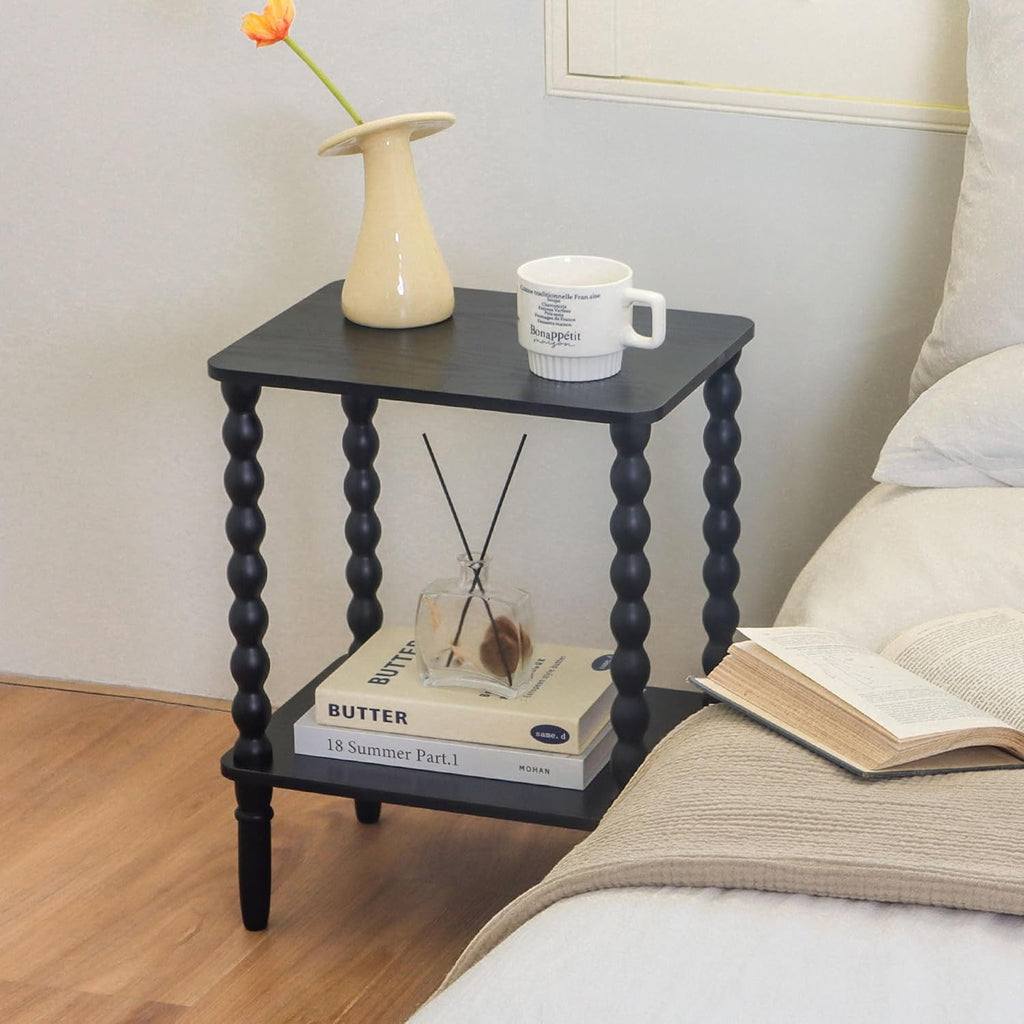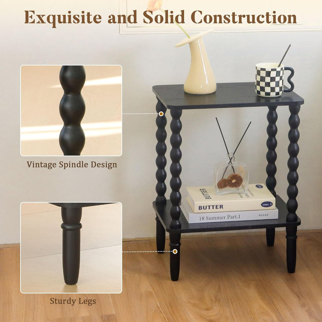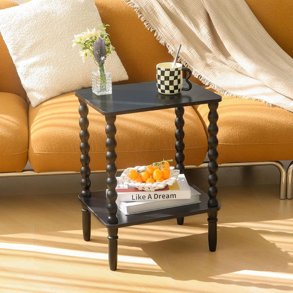 Side Table, Small End Table with Storage Shelf, 2-Tier Small Coffee Tables Living Room for Bedroom, Narrow Spaces (Rustic Brown)