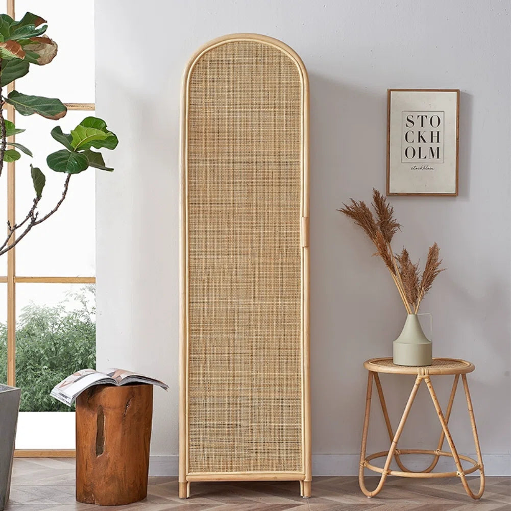 Rattan Wardrobe – Solid Wood Bedroom Storage Cabinet