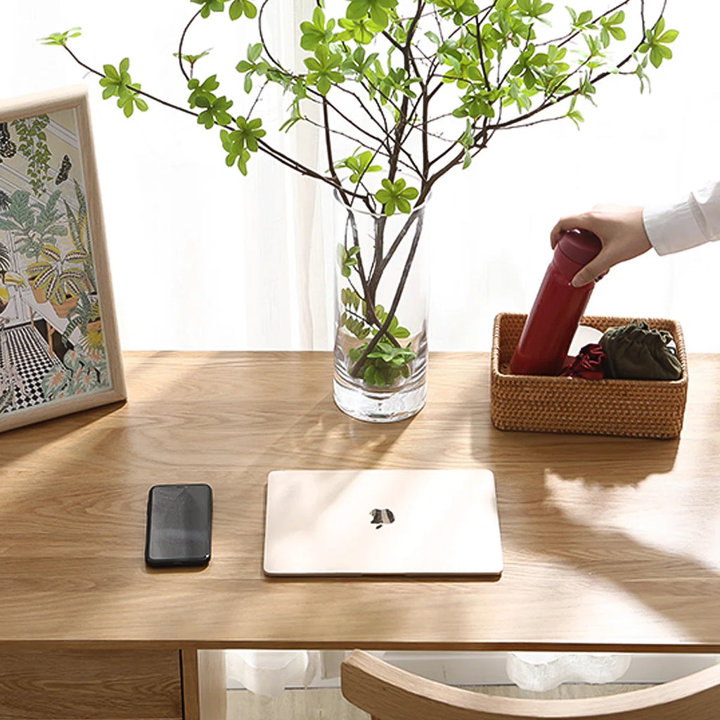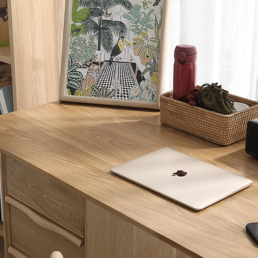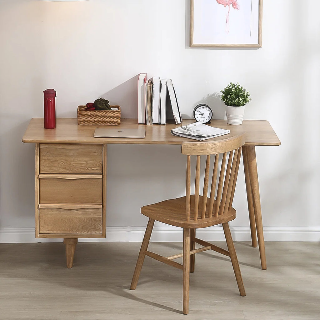 Sleek Solid Wood Rectangular Desk,3-drawer