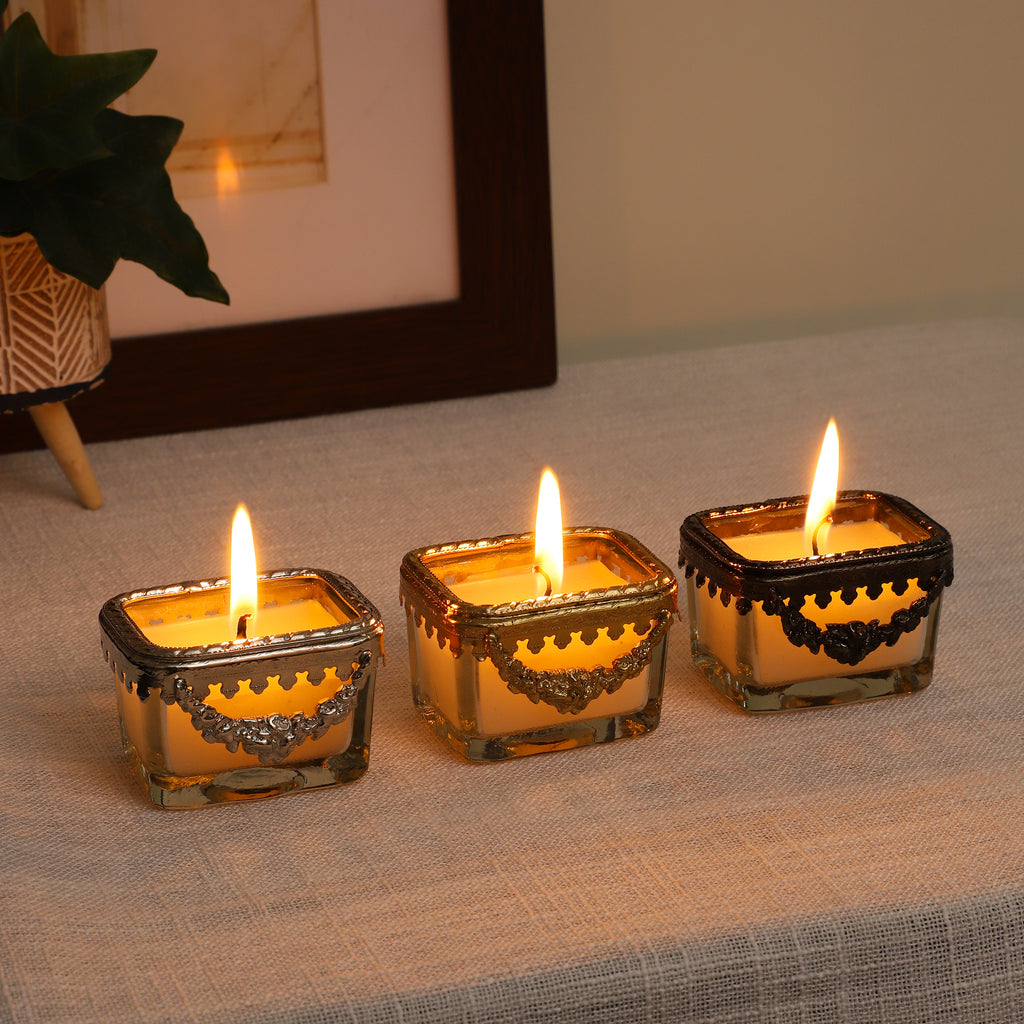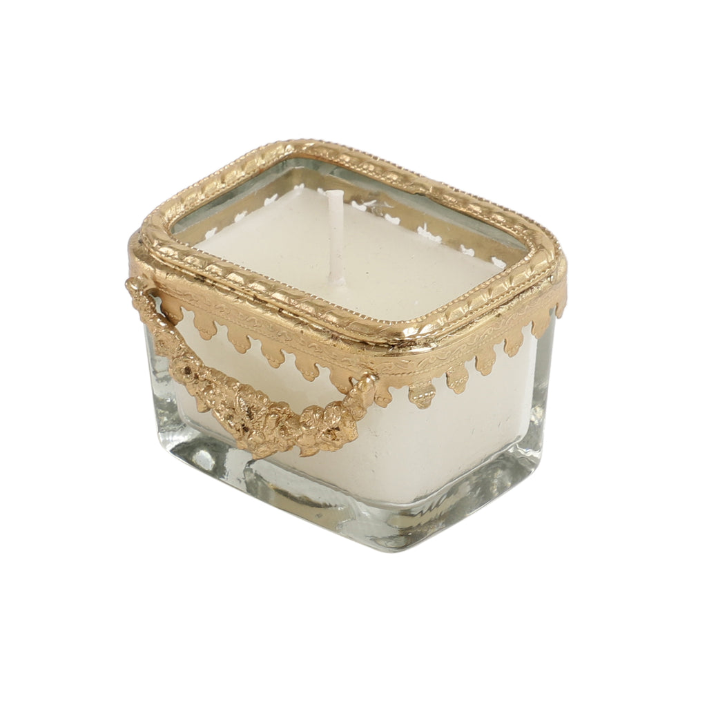 Snowy Whisper White Scented Candle Glass Jar With Golden Ring - OUCHCART