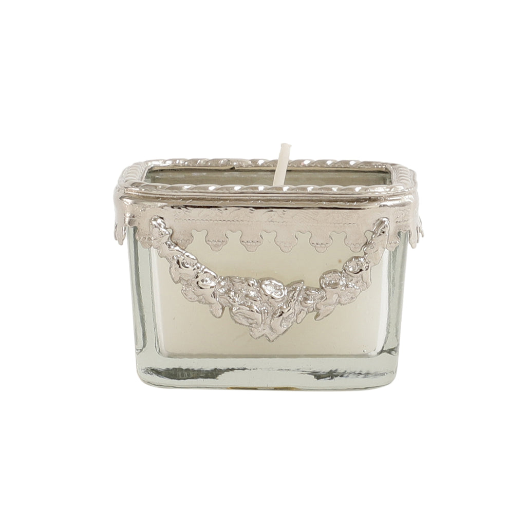 Snowy Whisper White Scented Candle Glass Jar With Silver Ring - OUCHCART