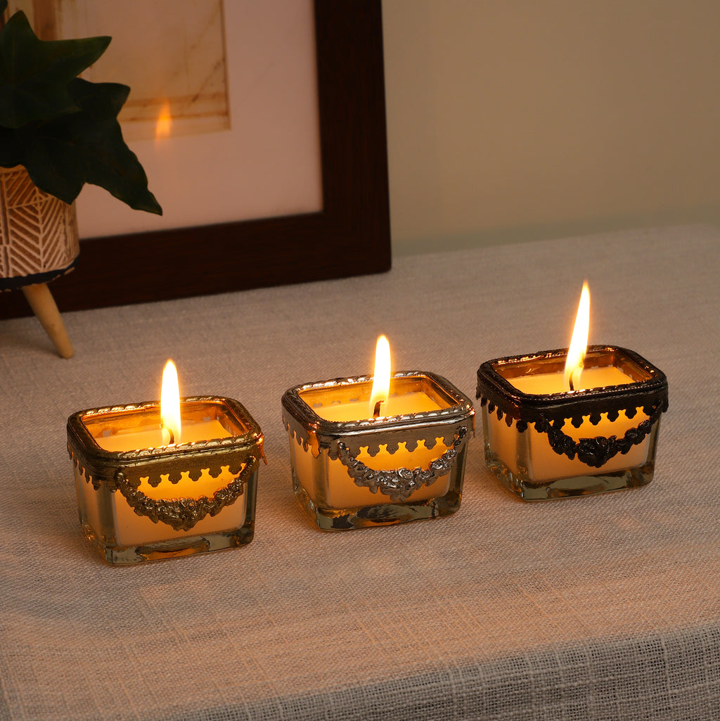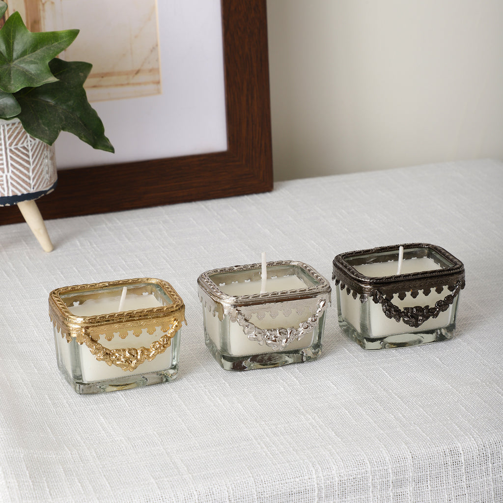 Snowy Whisper White Scented Candle Glass Jar With Golden Ring - OUCHCART