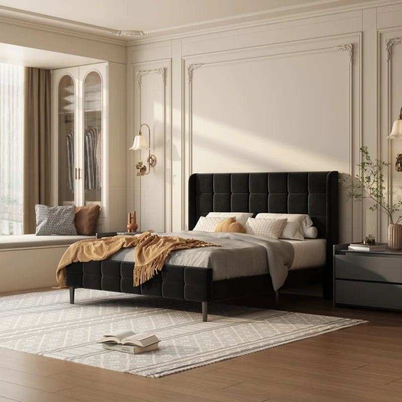 Grid-Tufted Upholstered Headboard: Adds a clean, elegant touch to your bedroom