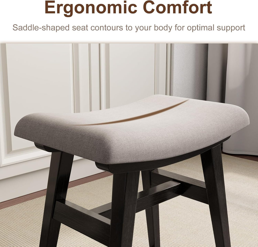 Curved Ergonomic Seat: Features an arc-shaped design that supports your body comfortably with 1.7” thick high-density foam padding covered in breathable linen fabric.