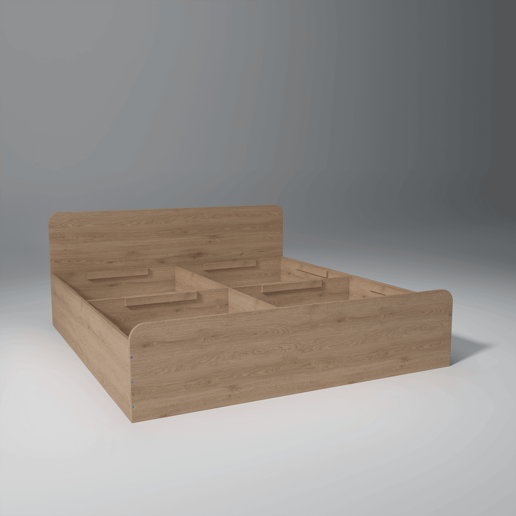 Somnen Engineered Wood Bed with Storage Box in Teak Finish