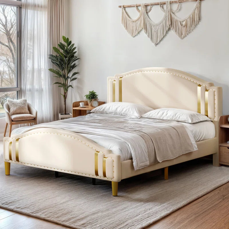 Crafted from solid MDF and supported by sleek, gold-finished stainless steel legs, this frame combines durability with contemporary elegance—making it a long-lasting centerpiece for any bedroom.