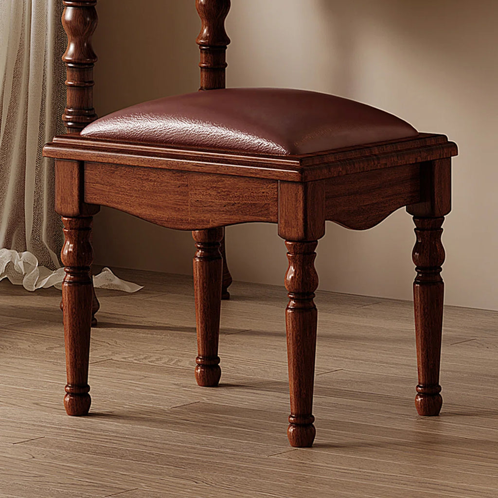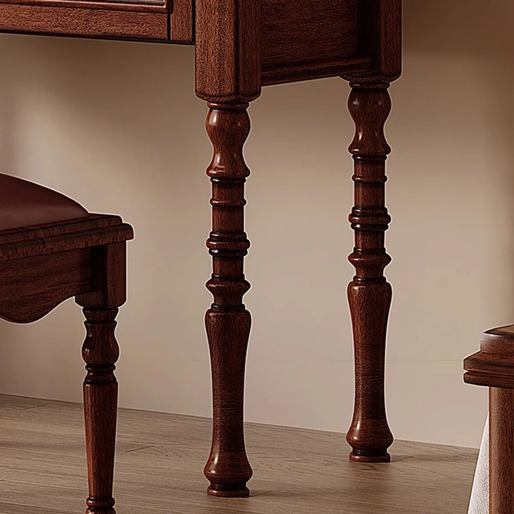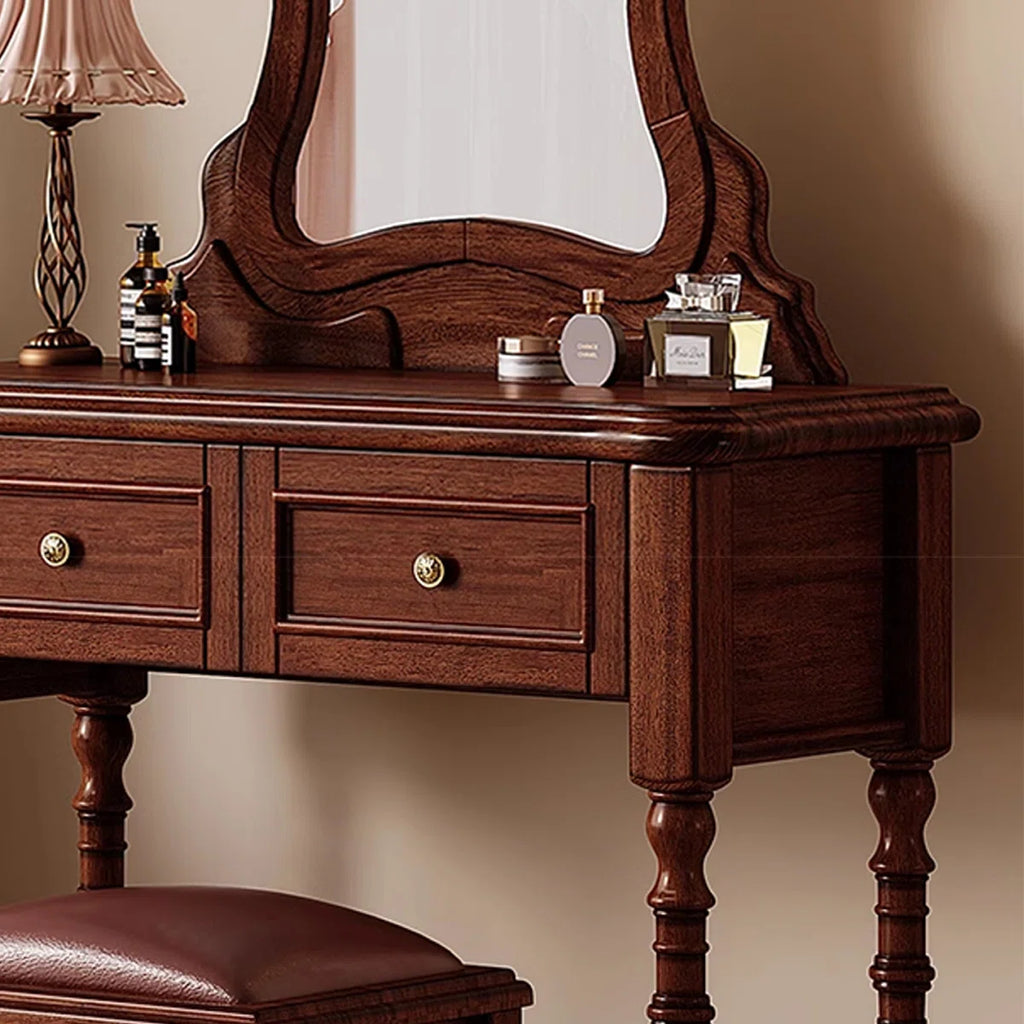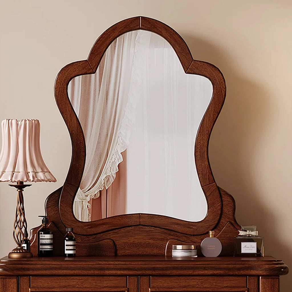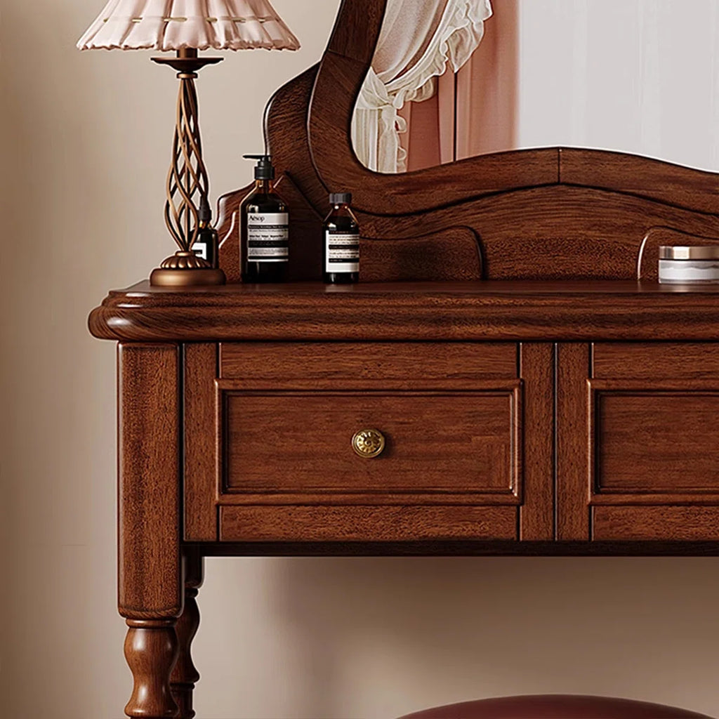 Vintage Mahogany Makeup Vanity Set with Petal Mirror & Stool
