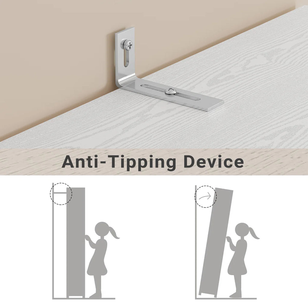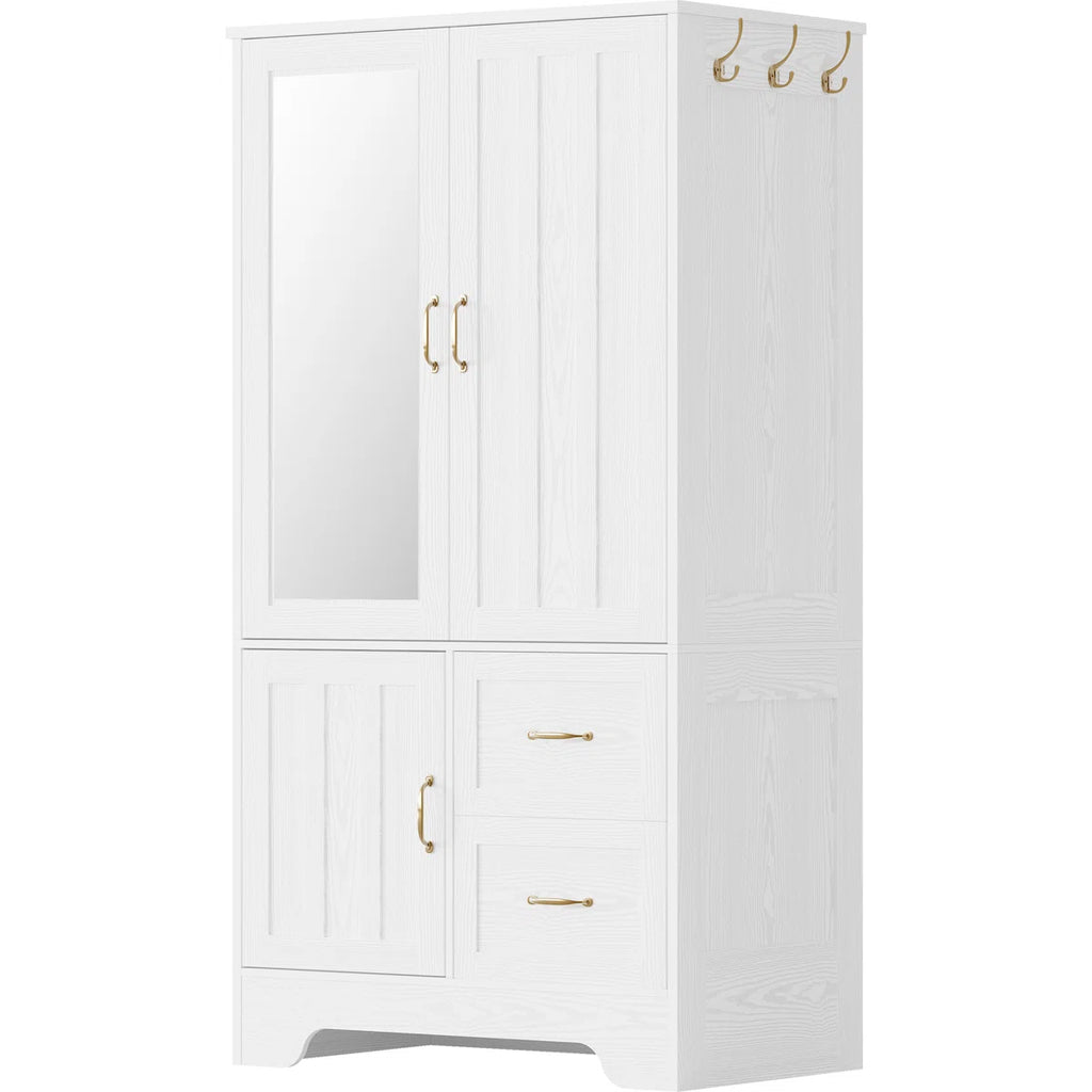 Spacious White Wardrobe Closet Wooden Armoire with Hanging Rod and Storage