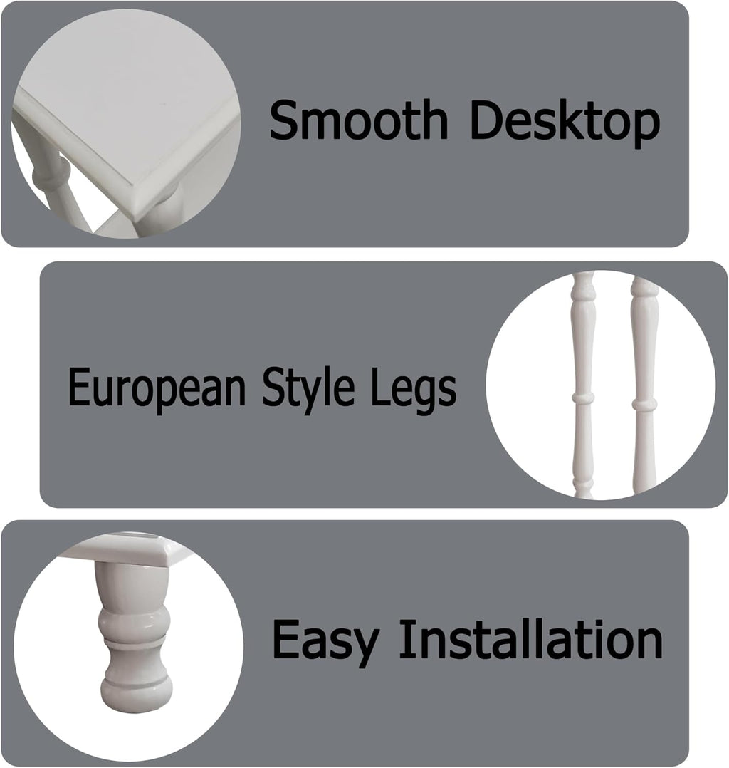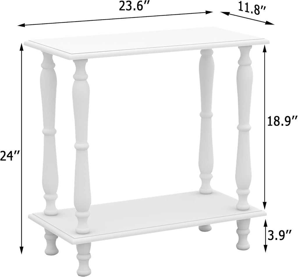 White 2-Tier Wooden Side Table – Vintage French Style for Living Room & Bedroom, Perfect for Small Spaces